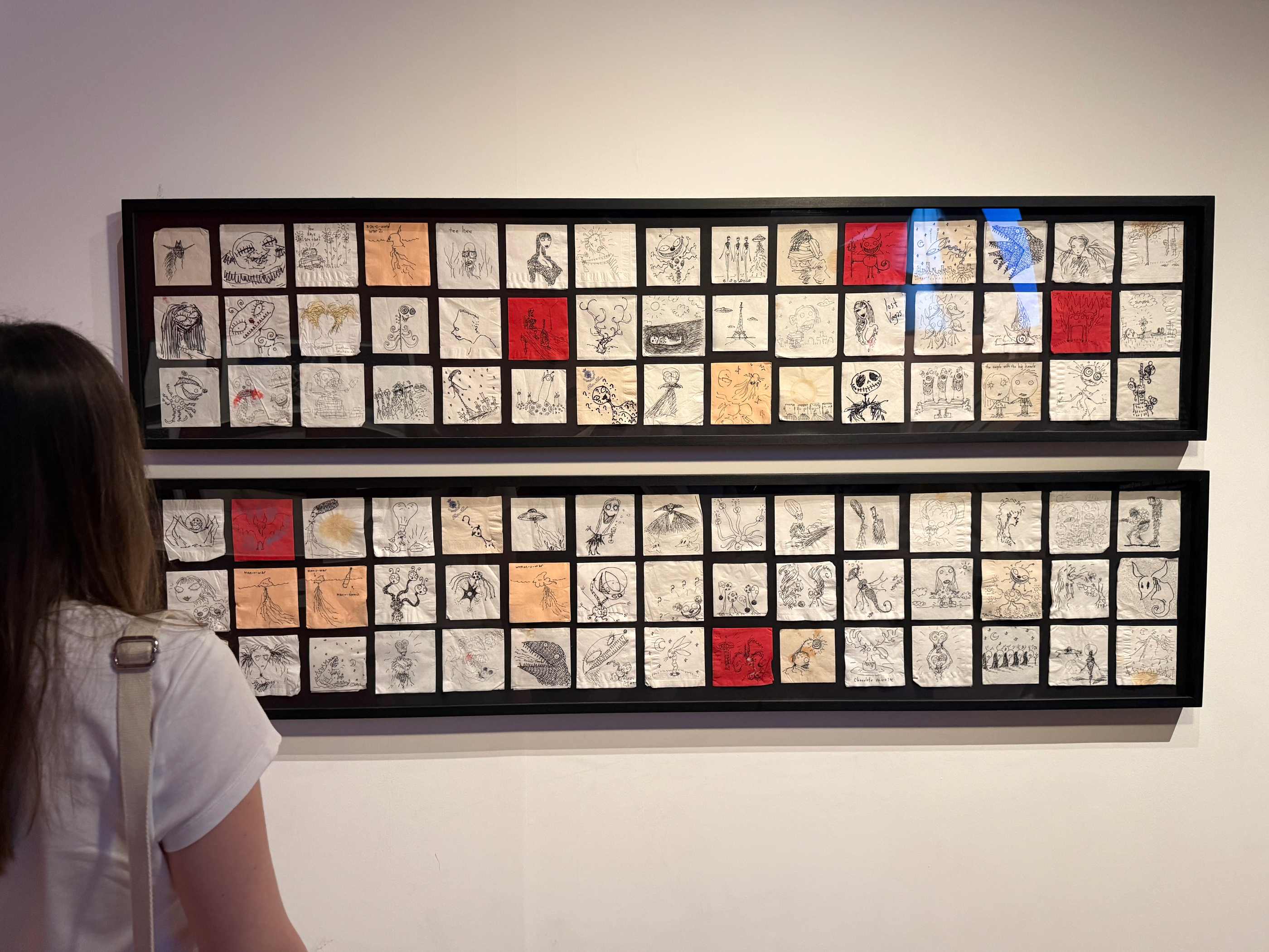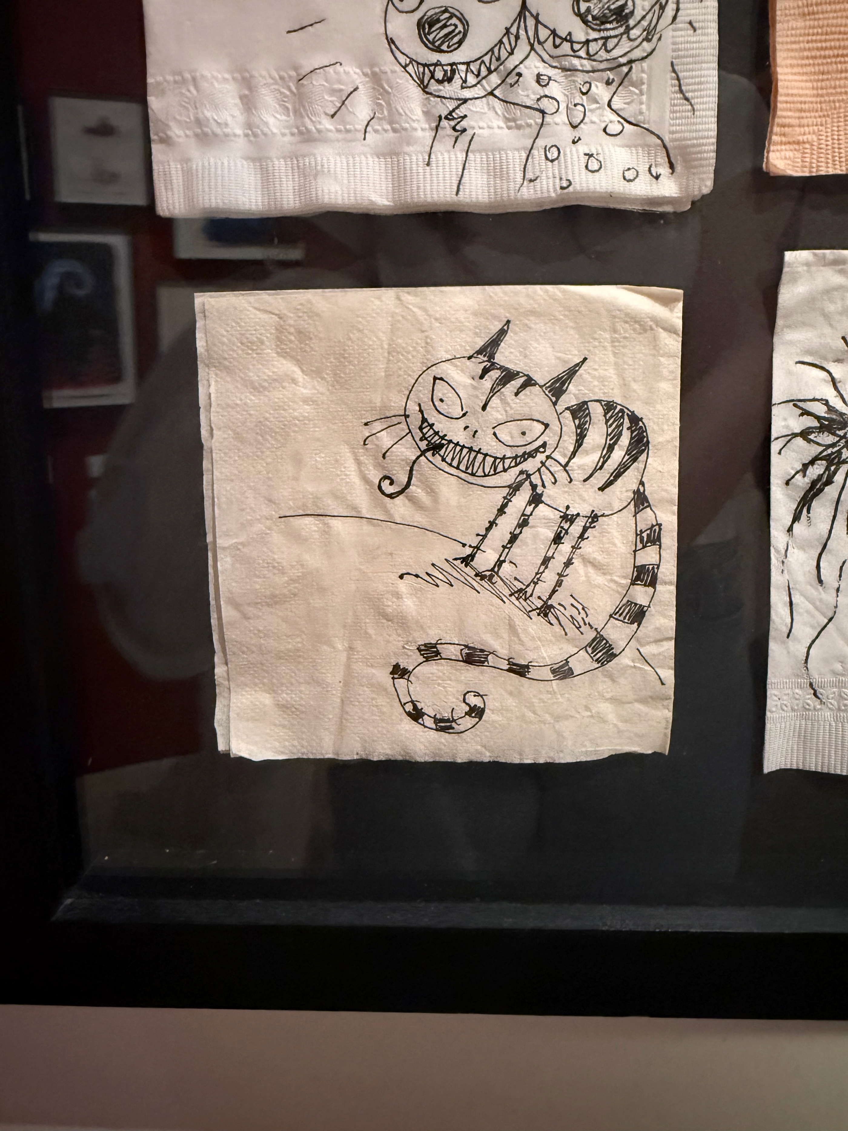 А эта часть выставки стала для меня настоящим шедевром. На этих колоритных салфетках запечатлены мысли Тима, его видение в моменты вдохновения.